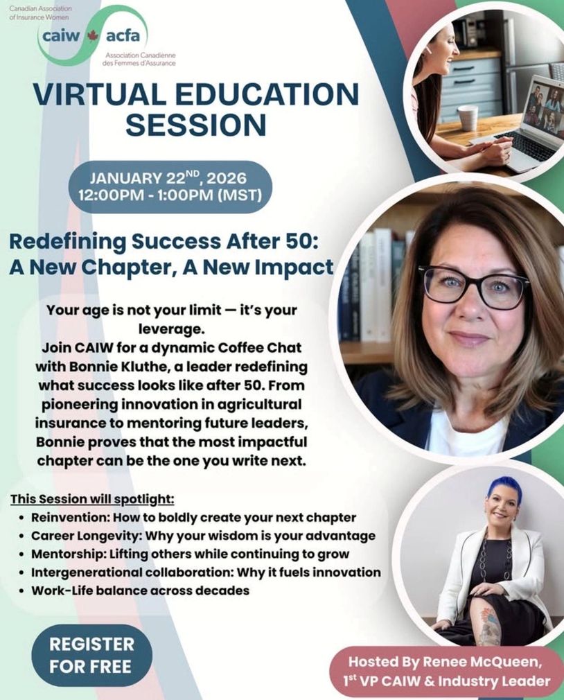 Join CAIW for a dynamic Coffee Chat with Bonnie Kluthe, a leader defining what success looks like after 50. From pioneering innovation in agricultural insurance to mentoring future leaders, Bonnie proves that the most impactful chapter can be the one you write next.